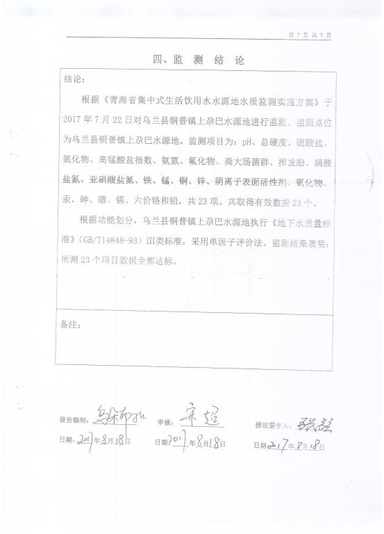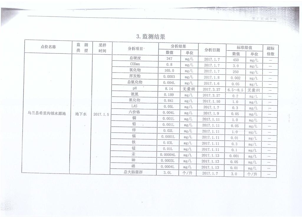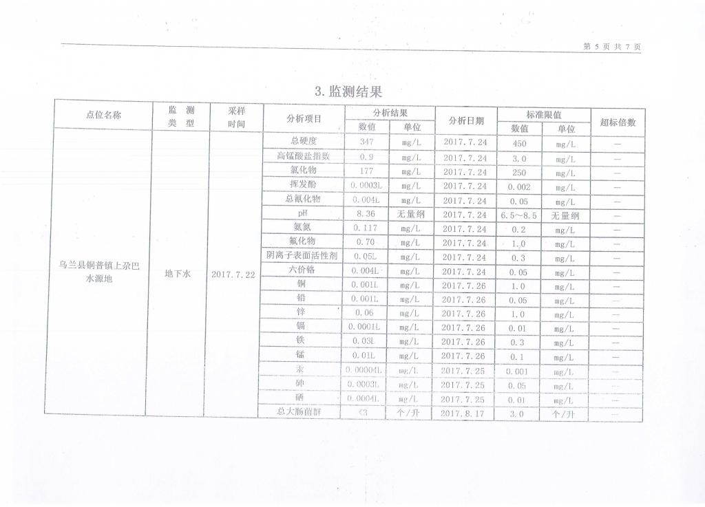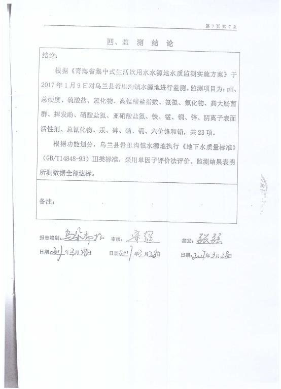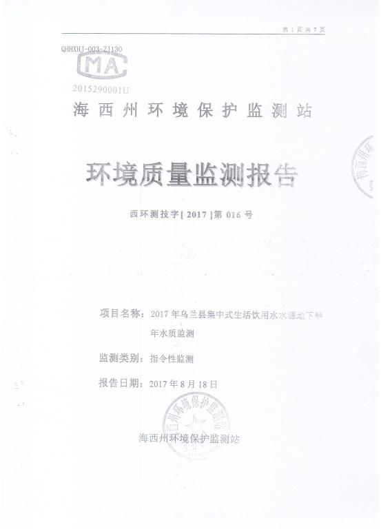 乌兰县环境保护和林业局关于公开乌兰县2017年水质检测信息的报告