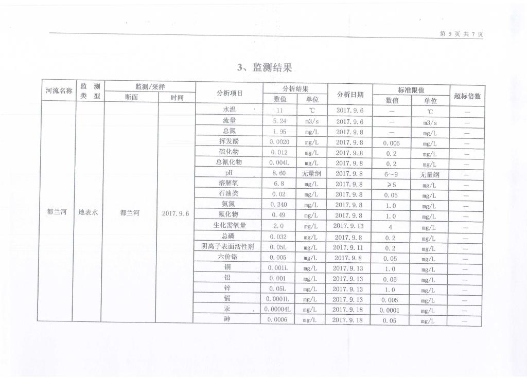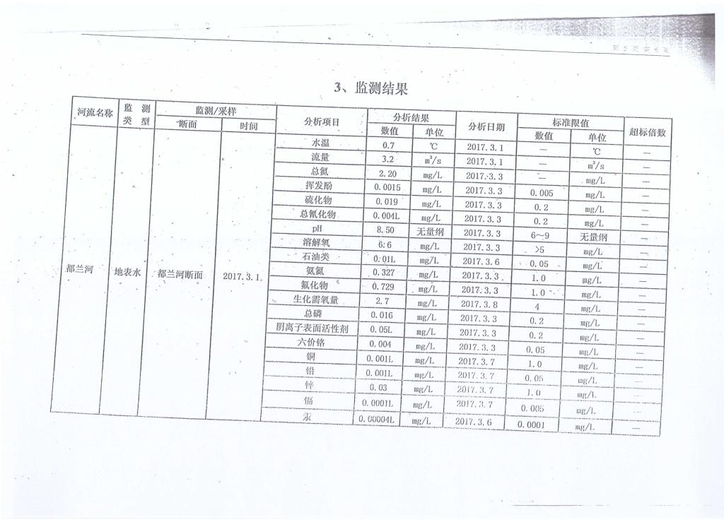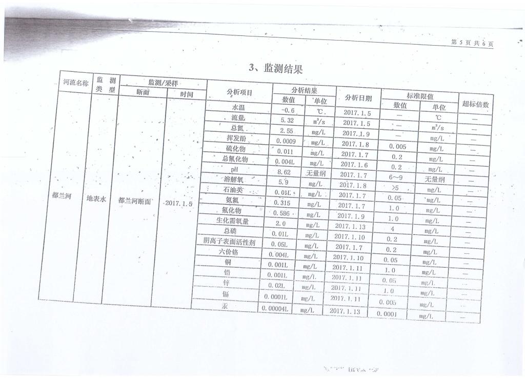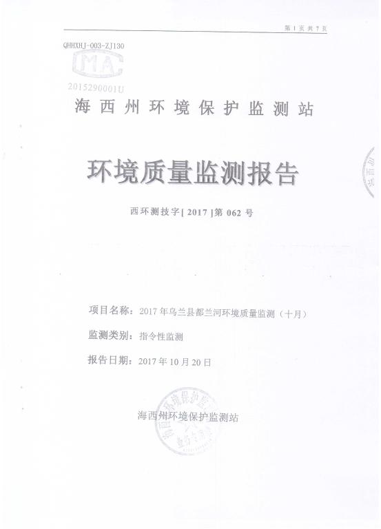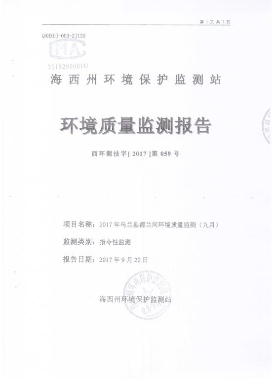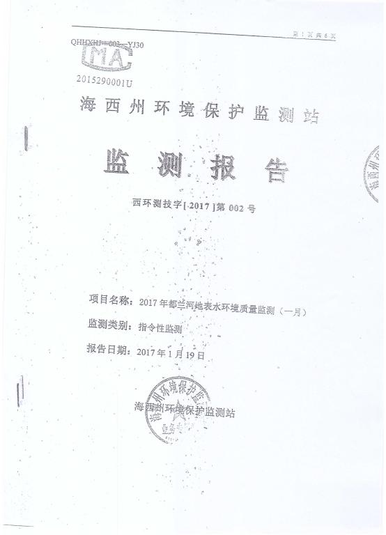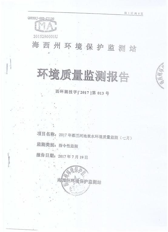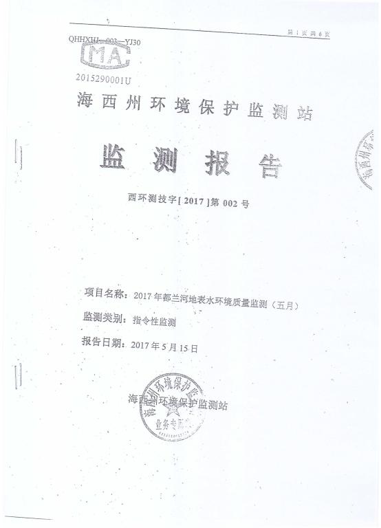根据《中华人民共和国环境保护法》第五十四条第二款规定“县级以上人民政府环境保护主管部门和其他负有环境保护监督管理职责的部门,应当依法公开环境质量、环境监测、突发环境事件以及环境行政许可、行政处罚、排污费的征收和使用情况等信息”的要求,需将我县2017年都兰河及上尕巴饮用水水源地水质检测信息依法进行公开。由于我局目前尚未建立环境保护门户网站,因此需将该信息在365体育娱乐网站进行公开,特此上报。